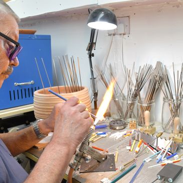I am not formally trained as a glass artist but am self taught, usually through trial and error. Initially more error than success but I am getting there. And more recently a move to include glass bead making which I am really enjoying especially with the historic interest for Medieval, Pagan and Viking style beads.My other interest that does have a bearing on my art glass, in a somewhat tenuous way, is the Native American Flute which I play or should I say noodle with.